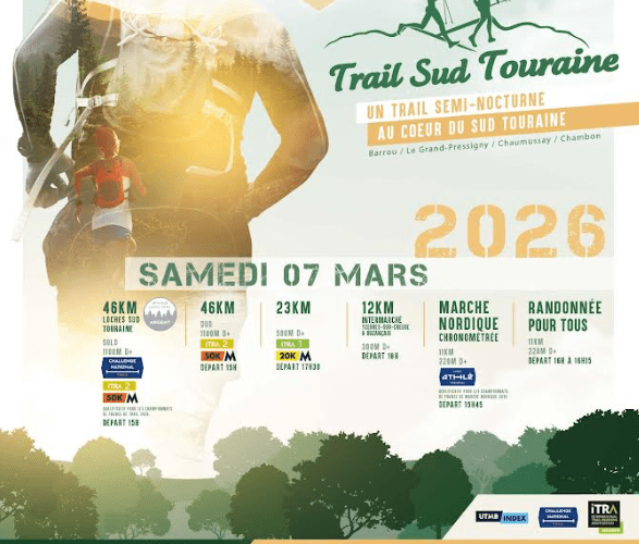 Le samedi 7 mars 2026, se tiendra l’épreuve de 11 km de Marche Nordique chronométrée du Trail Sud Touraine. Cette épreuve est inscrite au Challenge National MNT 2026, qualificative pour les Championnats de France 2026 et bénéficie du label FFA Bronze. La marche nordique se déroulera sur les 11 derniers kilomètres du parcours du trail de 46 km, sur un terrain naturel, exigeant et varié, … Continuer de lire Marche Nordique chronométée du Trail Sud Touraine : Samedi 7 mars 2026