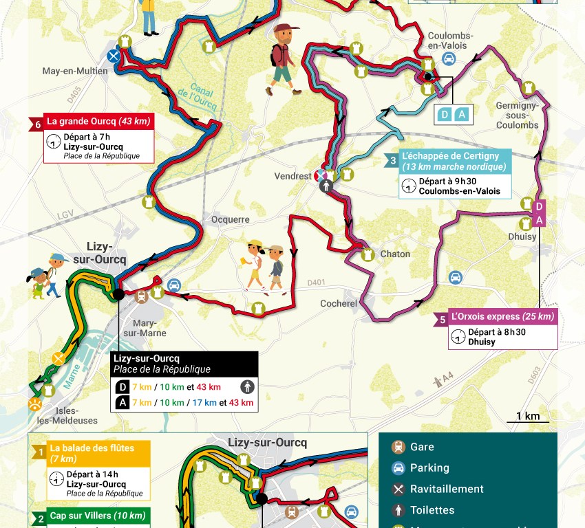 - Lizy-sur-Ourcq pour le 7 kilomètres, le 10 kilomètres et le 43 kilomètres
