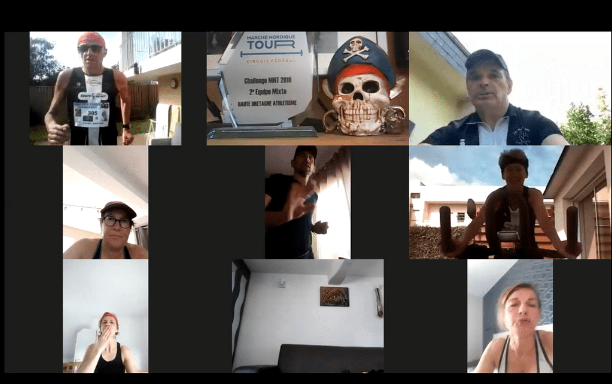 Claude Larmoyer : Face à face avec mon calendrier…. d’annulations en reports : Bouleversé notre petit monde….. et le grand aussi, depuis six semaines nous tournons en rond, confinés dans notre kilomètre. Chacun fait preuve d’invention, d’ingéniosité… une multitude d’applications, de coachs en tout genre fleurissent sur Internet. Pour moi, par chance, intégré dès le début dans le très sélect club du HBA, c’est deux séances par jour sur Zoom sous la houlette de notre vénéré druide et champion breton Denis Leux et notre grand maître de la marche nordique Gérard Bernabé pour des séances très complètes d’étirements, de renforcement, de gainage, de perception du corps, très axées sur notre sport favori. Un travail bénéfique pour le jour où nous ressortirons les bâtons… Et, cerise sur le gâteau, « la tête et les jambes », tous les deux jours, notre maîtresse de la langue de Molière, Anne François nous propose sa dictée… Là au moins je fais des podiums. La Bretagne, terre d’accueil, invite à ces séances nos amis Alsaciens et autres Chaumontais, de Jean Luc Heckmann à Martine Tremel et bien d’autres ! Et pour garder l’esprit de compétition si cher à nos cœurs, nos marcheuses et marcheurs se lancent dans des défis indoor à vocation solidaire : Lutte contre le Covid ou pour la fondation de l’Abbé Pierre entre autre. Les Nordiques courent sur tapis, vélos ou divers rameurs etc…..avec vrais dossards et dons aux associations. Encore deux semaines à tenir et nous pourrons, peut-être, reprendre de la liberté en restant très prudent… Un peu de nostalgie… de ces belles compétitions qui nous ont échappé, après Roncq et sa Jaroise et Chamarande toutes deux reportées en octobre. Ce weekend ,nous aurions dû être à Bouilly (trail de Montaigu) sur les terres de notre ami Rodolphe Cressonnier pour un superbe parcours de vingt six kilomètres… une nationale bien éprouvante, même les Bretons auraient fait le déplacement !!! Bien sûr, je serais allé à Orange le deux Mai, et à Montigny sur Loing chez nos azimutés de Marc Thoraval, à Chaumont pour un beau vingt kilomètres avec Jean Noël Le Dentu, à Villard pour les France… et une petite halte chez Didier Omaly dans le Beaujolais. Mais voilà un petit virus à tout bouleversé. Nul doute que nous en ressortirons plus forts, plein de beaux projets, de belles compétions et de belles amitiés… »