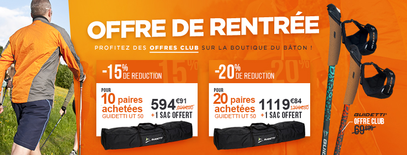 Alors que de nombreux clubs reprennent du service, la Boutique du Bâton, qui accompagne les clubs depuis 5 ans, revient en cette rentrée avec de nombreuses offres. Cette année, la Boutique du Bâton a mis l’accent sur la marque Guidetti, marque française de grande qualité, qui propose une offre intéressante et des remises importantes. Pour un devis pour d’autres marques : Léki, Swix, TSL ou … Lire la suite La Boutique du Bâton : Offre Club de marche saison 2020/2021