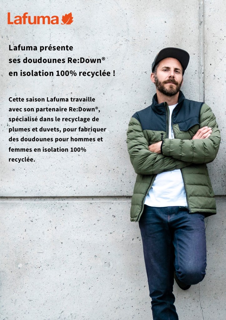 Lafuma nous présente aujourd’hui ses doudounes Re:Down® en isolation 100% recyclée.