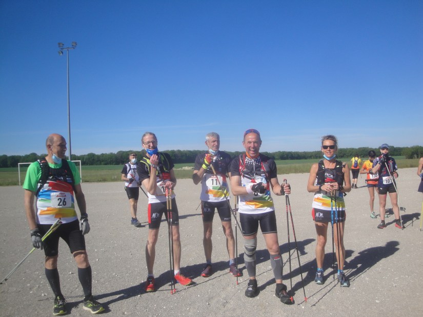 Samedi après-midi, c’est l’heure des retrouvailles tant attendues au stade des Lavières, commune de Brottes, anti Covid idéal sur un plateau désert… déjà quelques masques !!! Connus, des Chaumontais, Pierre Mallet et Franck Cordier, Bruno Brun et Carmen… incontournables… des champions de France, retour de Didier Frison et Franz Liskowitch et son équipe dont Cendrine Drillat de la Motte Servolex ,lieu de mes colonies de vacances ( séquence nostalgie ) arrivent Gilles Pinsard et Sylvain Angeras, nouveau club de Montargis Nordicfit…aussi avec plaisir, Christophe Rey et son fils Lenny, 16 ans et graine de champion accompagné de Jean Patrick Fond, tous trois de l’UA Orange, mon club outsider pour cette saison…enfin c’est mon avis, petite reconnaissance de parcours et déjà de bonnes sensations.. Didier Omaly juge sur l’épreuve est des nôtres.
