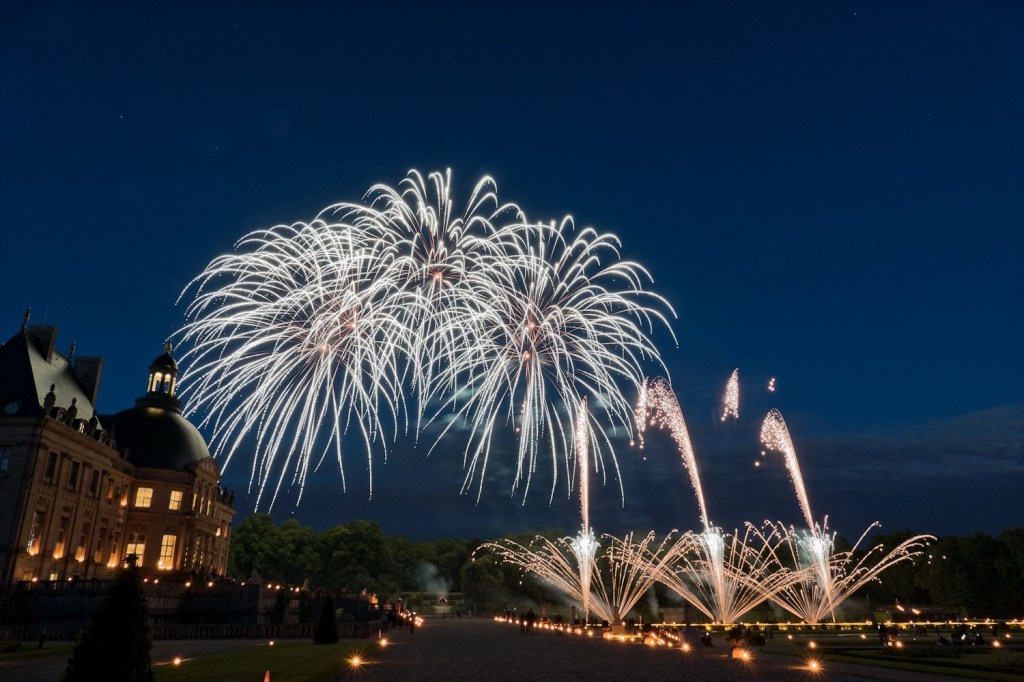 Pour clôturer chacune des soirées aux chandelles, le domaine met en scène un spectacle sons et lumières avec des tableaux pyrotechniques relatant la fête du 17 août 1661, grâce à la lettre écrite par La Fontaine à son ami Maucroix. A cette occasion, André Dussollier prête sa voix à Jean de la Fontaine.