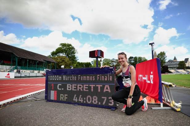 Du côté des femmes, c’est aussi une très grande performance avec Clémence Beretta. Deuxième des Championnats de France du 20 km le 29 mai dernier, derrière Camille Moutard, la vosgienne a retrouvé sa hargne pour s’imposer très largement sur le 10 000 mètres. La marcheuse d’Athlé Vosges Entente Clubs n’a pas laissé de suspense, en se détachant rapidement de sa rivale Eloïse Terrec pour se « concentrer sur [elle]-même. » Régulière, elle a rallié l’arrivée en 44’08’’72, rabotant ainsi son propre record de France d’une quarantaine de secondes. La confiance regonflée à bloc, la Vosgienne va désormais gagner un camp d’altitude en Italie pour se donner toutes les chances de briller en Bavière fin août. Clémence Beretta qui s’est imposée devant Eloïse Terrec et Laury Cerantola signe à cette même occasion, la sixième performance mondiale de l’année.