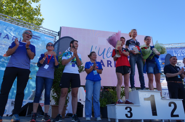 Chez les filles, on attendait Christiane Salvi du Pays de Colmar Athlétisme venue elle aussi défendre son titre et l’on a eu une grande Christiane qui finit 4 ème au scratch en 3:16:52, elle fait sur la distance jeu égal avec les meilleurs mais il faut souligner la très belle performance d’Angélique Doms de la Team Guidetti en bonne forme et qui termine avec le sourire en 3:17:45. Élodie Besnier-Kerven du Stade Rennais Athlétisme complète le podium en 3:28:25.