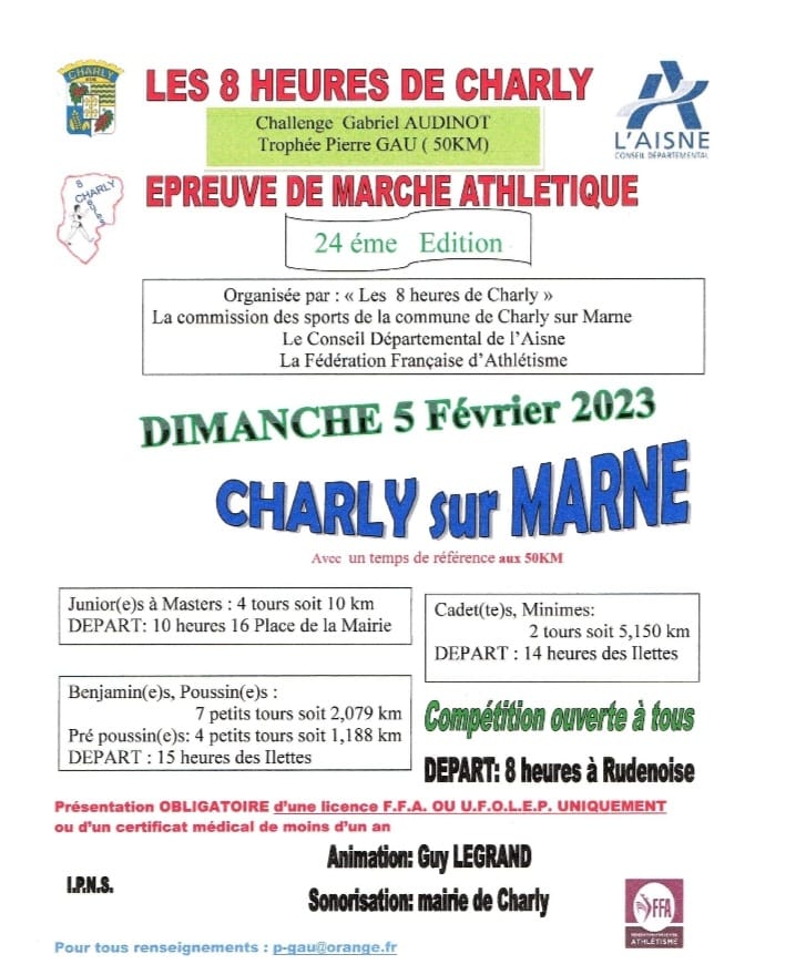 Rendez vous incontournable du début de saison, les 8 Heures de Charly se disputeront le 5 février prochain avec la présence de grands noms de la marche de Grand Fond, comme Florian Letourneau, vainqueur en 2019, Maxime Faiteau, vainqueur en 2018, mais aussi Philippe Morel, Cédric Varain, Mathieu Olivares, Georges Ceccaldi, ou encore Mickael Guillot, Sylvie Maison et Claudine Anxionnat.