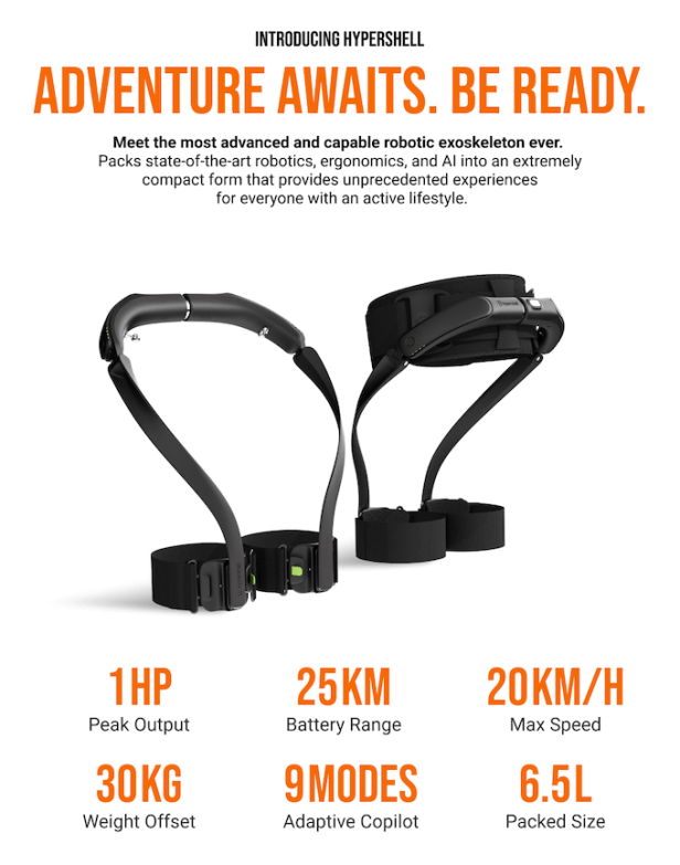 La société chinoise Hypershell Technology présente la toute nouvelle génération d’exosquelette, intégrant la robotique, l’ergonomie et l’intelligence artificielle. Le but, vous faciliter la marche, mais aussi tout travail physique, et les longs trajets chers aux spécialistes du Trek.