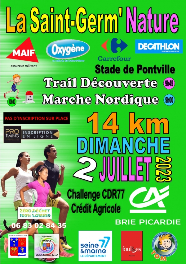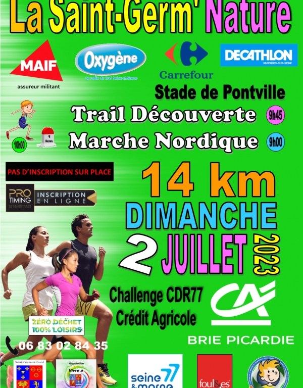 La Saint-Germ’Nature 2023 vous attend le dimanche 2 juillet pour une marche nordique chronométrée de 14 kilomètres à Saint Germain Laval (77).