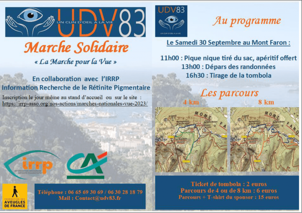 culturemarche.com vous invite à vous inscrire à une Marche Nationale pour la vue. A l’initiative de l’IRRP, de nombreuses marches sont actuellement organisées un peu partout en France. Ce samedi 30 septembre, deux marches sont organisées. Une à Lyon et l’autre à Toulon.