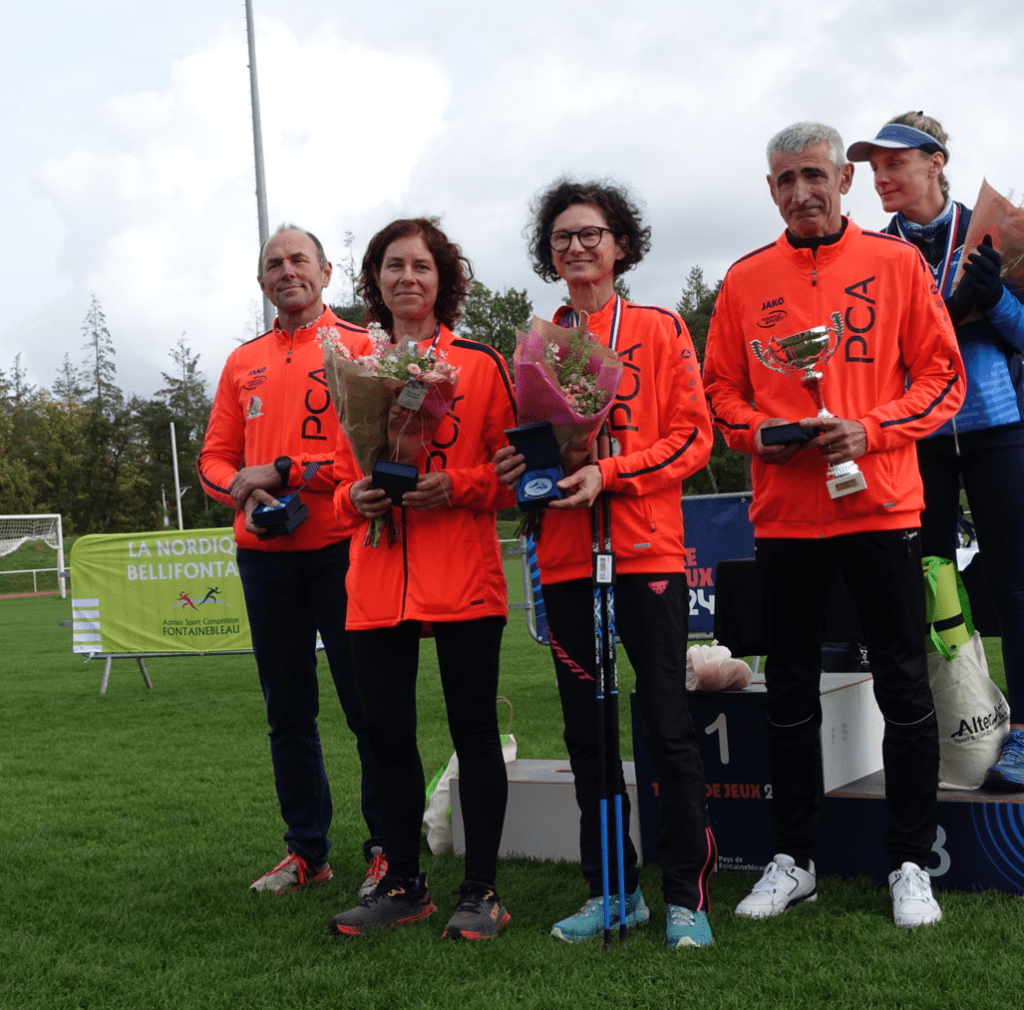 Christiane à nouveau sur la plus haute marche, terminant en 01 h 32 min 31 s devant la petite nouvelle et non moins méritante Emmanuelle Defaud également au PCA en 01 h 39 min 02 s. Sur la troisième marche c’est un bonheur de retrouver Angélique Doms de la Team Guidetti Nordic Performance. Après un passage difficile, Angie termine en 01 h 41 min 21 s avec le beau sourire du devoir accompli !