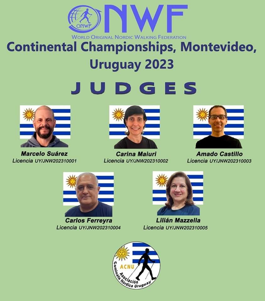 C’est l’équipe récemment constituée de juges internationaux de marche nordique qui a arbitré la compétition (voir photo ci-contre), étant les premiers juges uruguayens à exercer cette fonction : Carlos Ferreyra, Marcelo Suarez, Carina Maiuri, Lilian Mazzella et Amado Castillo.