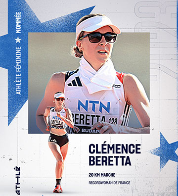 La marche athlétique est à l’honneur avec Clémence Beretta dans la catégorie athlète féminine et avec Camille Moutard, Ana Delahaie et Pauline Stey, dans la catégorie espoir féminin.