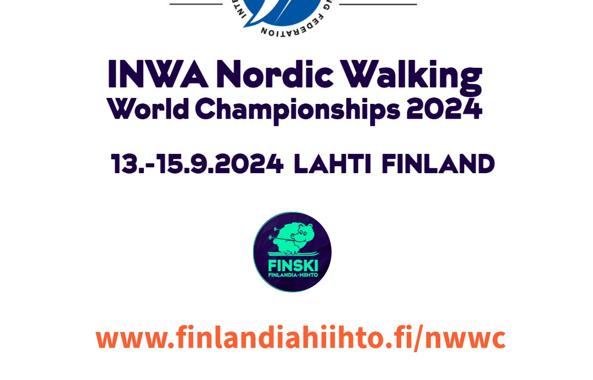 La Fédération internationale de marche nordique INWA et Finski (Finlandia-hiihto) organisent conjointement les Championnats du monde de marche nordique du 13 au 15 septembre 2024 à Lahti. Lahti est l’un des centres de compétition de sports d’hiver nordiques les plus célèbres au monde.