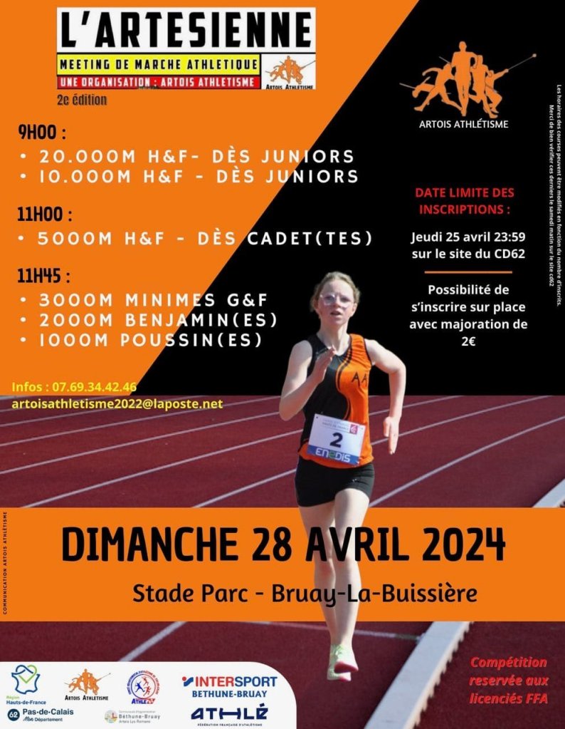 Après une première édition en 2023, l’Artésienne, organisée par l’Arthois-Athlétisme, revient le dimanche 28 avril avec de nombreuses épreuves et une distance rajoutée au programme : Un 20 000 mètres.