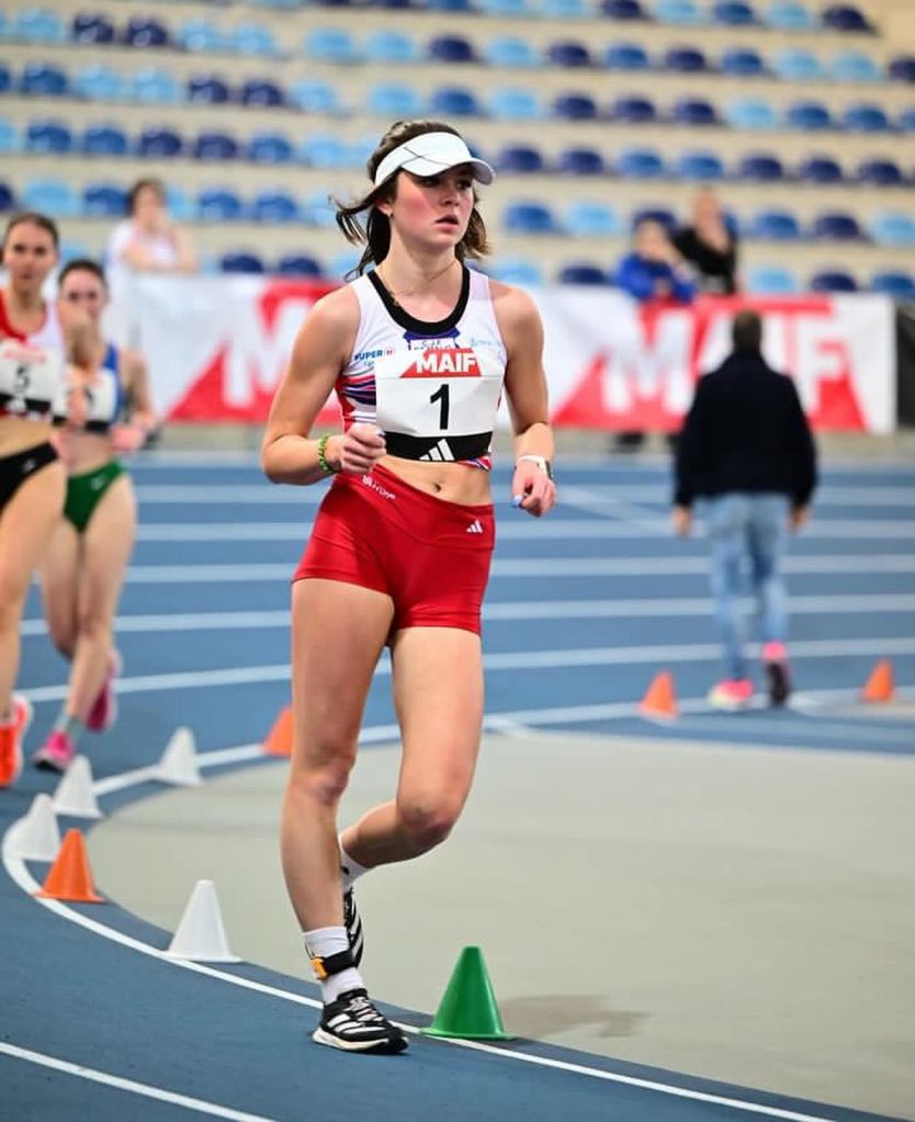 Chloé Le Roch s’est imposée ce samedi 2 mars 2024 à Miramas lors du 3000 mètres marche elite. Elle devance sur le podium Elite, Elly Lagrange (Athle 66 – S/L Union Perpignan) et Agathe Mille (Grac – S/L Grac Renwez) et revient pour notre plus grand plaisir, sur ce résultat plus que prometteur. Puisqu’à 16 ans seulement, la bretonne qui avait battu le record de France cadette sur 3000 mètres en janvier dernier s’adjuge par la même occasion un nouveau record de France avec un chrono de 12’39″58, qui représente la 11ème performance mondiale de tous les temps de la catégorie cadette (U18), et la 4ème performance française de tous les temps, toutes catégories confondues.