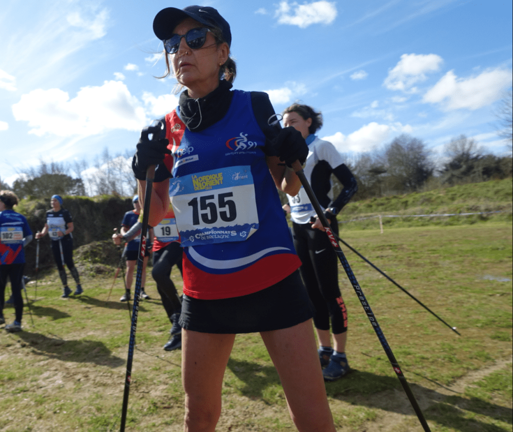 Pour la seconde place, encore du bleu avec le maillot de la Team Guidetti Nordic Performance, Angélique Doms, malgré une épaule fragile se place très bien en 01 h 28 min 30 s, battant France Allain, HBA, la Championne de Bretagne 2023…