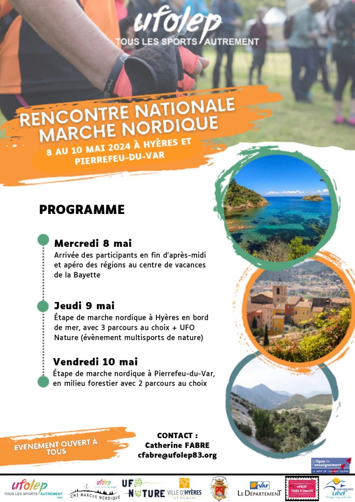 Un Rassemblement National Marche Nordique – UFOLEP du Var est prévu du 8 au 10 mai 2024 à Pierrefeu-du-Var (83).