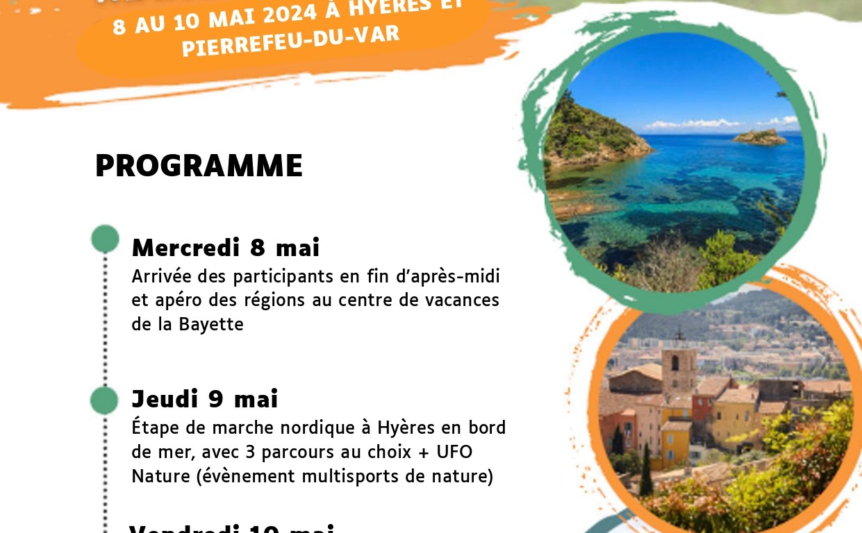 Un Rassemblement National Marche Nordique – UFOLEP du Var est prévu du 8 au 10 mai 2024 à Pierrefeu-du-Var (83).