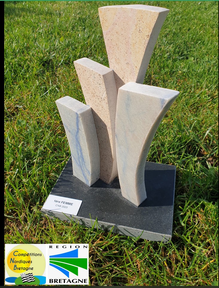 Belle initiative à Saint-Avé, la remise des prix du Challenge Nordique Bretagne 2023 avec de véritables Trophées réalisés par les apprentis tailleurs de pierre de l’UNICEM…une idée à l’attention de la CNM pour les prochains trophées du Challenge MNT !