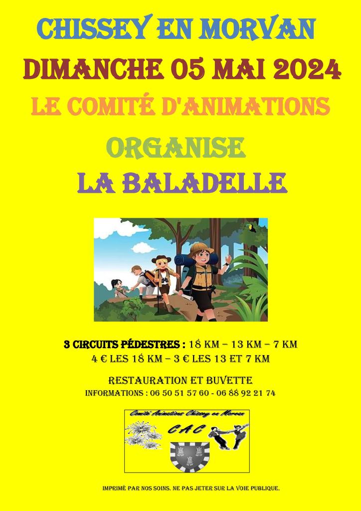 Le Comité d’Animation de Chissey en Morvan ( Saône-et-Loire), organise sa randonnée pédestre, La Baladelle, le dimanche 5 mai 2024.