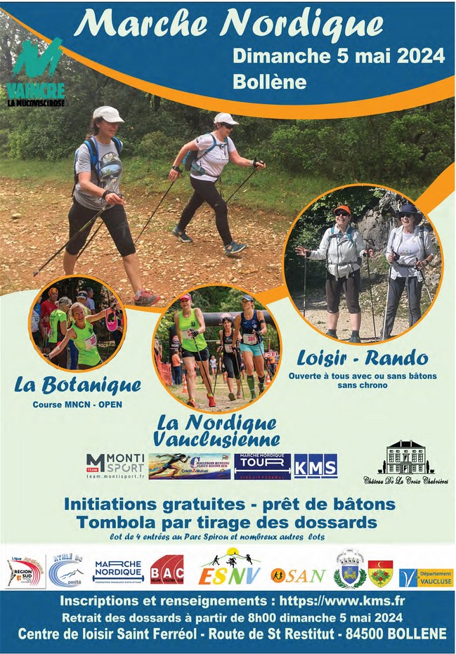 Ce dimanche 5 mai 2024, la Nordique Vauclusienne, manche du Marche Nordique Tour, qui se dispute au Château de la Croix Chabrière, à Bollène, au cœur du Vaucluse, offrira une manche exceptionnelle avec la présence des meilleurs marcheurs venus de toute la France. On attend au départ l’équipe Team Guidetti Nordic Performance avec Alan et Sébastien Dos Santos, mais aussi Angélique Doms ainsi que Florie Clément, et d’autres grands noms comme David Deguelle, Christophe et Lenny Rey, Xavier Gelin, Philippe Weber, Elisabeth Valette, Sandrine Talbotier, Ethel Drappeau, ou encore Christiane Salvi…