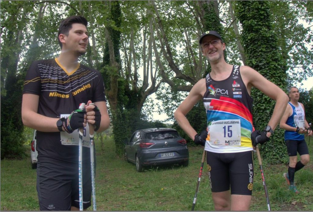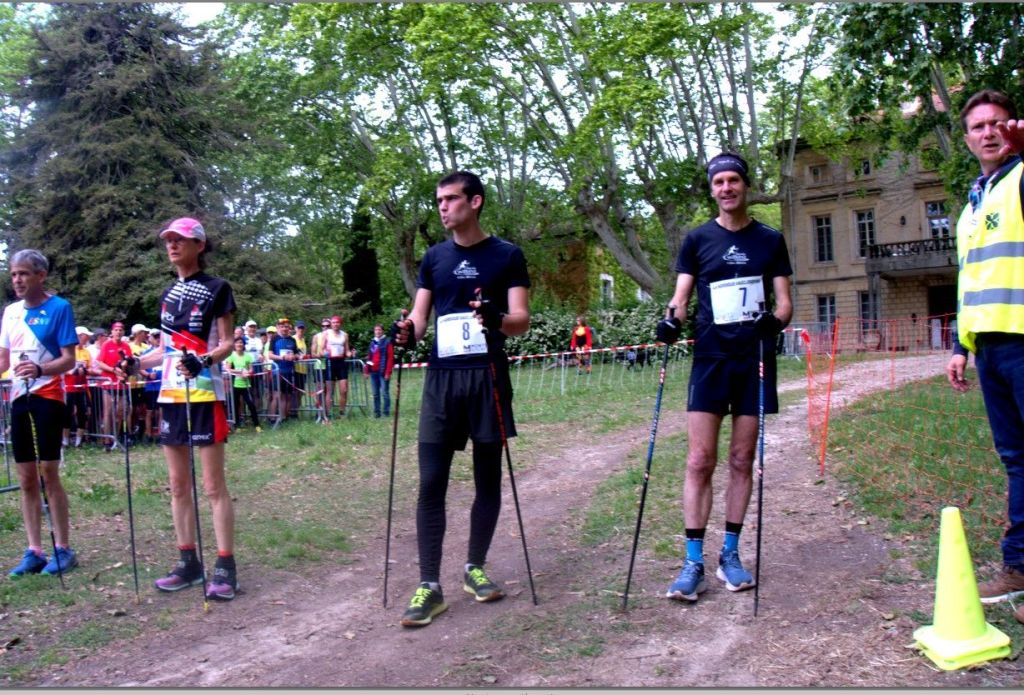 De la réflexion, un regard sur l’international, une bonne connaissance du terrain. L’équipe de Bollène nous propose donc un départ par vagues de quatre en fonction de la vitesse de chacun… Les athlètes sont canalisés avant de se positionner à 5 mètres de la ligne, le top est donné par le starter, toute les 5 s, c’était 10 l’an passé, le chrono se déclenche au passage de la ligne, le geste nordique est là, le juge contrôle quatre concurrents à la fois, c’est fluide, agréable à regarder et l’on suit la course sans problème…