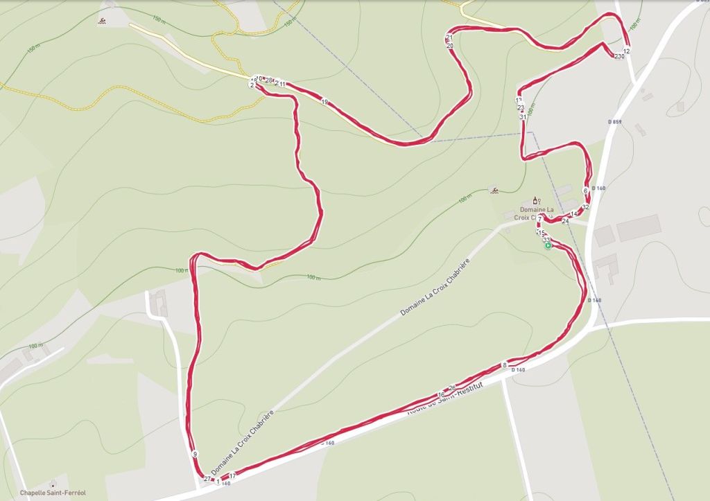 Un départ sous les platanes en légère descente et c’est bientôt une ligne droite de 800 m en partie sablonneuse le long du mur d’enceinte pour aborder après un champ de coquelicots, la première montée sous le soleil, un faux plat et ça remonte, un virage et ça remonte….et encore, et encore…enfin en haut, beau panorama sur les juges. C’est la descente, délicate avec ses petites pierres qui roulent sous la chaussure, des cactus, des buissons, quelques arbustes et toujours des juges…un peu de bitume, passage dans les vignes et c’est l’approche de la bâtisse, ravito organisé comme j’aime avec le gobelet d’eau bien placé, on boit en marchant, le carton est au bon endroit pour jeter le gobelet, juste le temps de remettre le gantelet et c’est la sortie avec la bonne gestuelle. Pas de temps perdu, reste 150m là où sur le dernier tour on peut prendre un carton sans être stoppé. La ligne doit se passer en marche nordique…un dernier platane à contourner et c’en est fini pour le premier tour… Quatre boucles d’égale distance, 12 400m, parfaitement préparés par les bénévoles, débroussaillés, ratissés … La chronométrie est assurée par KTM, un sans faute avec en prime un pointage à chaque tour….