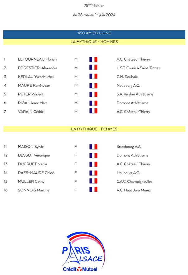 7 hommes et 6 femmes sont attendus sur la Mythique.