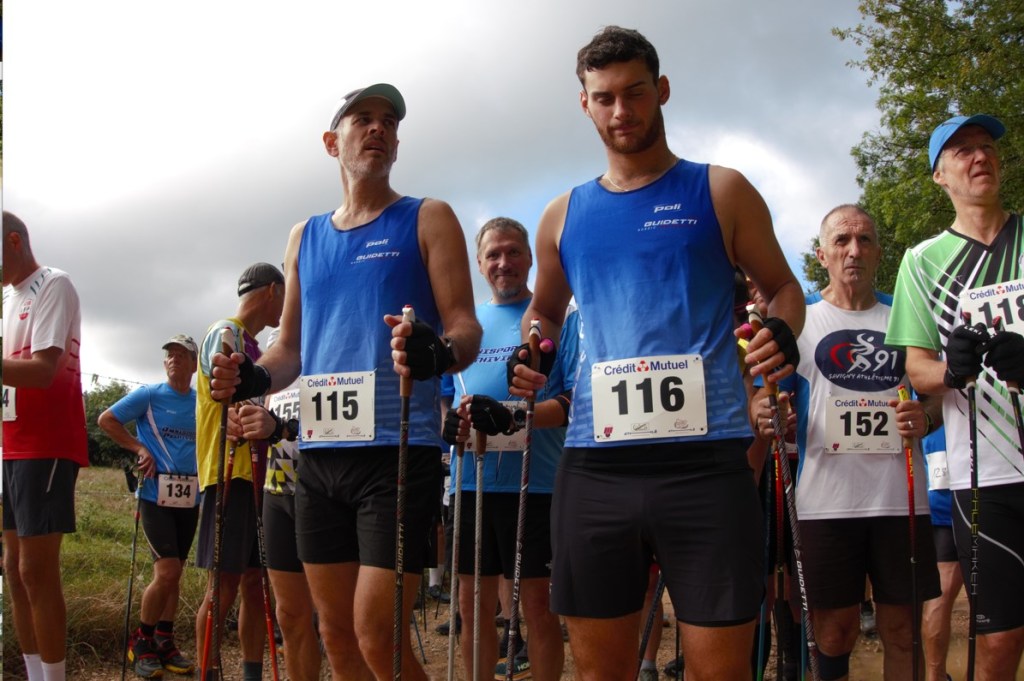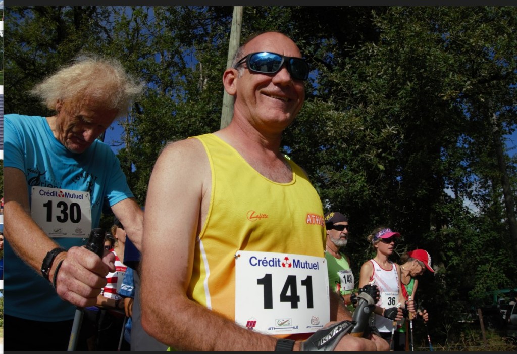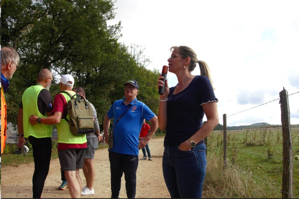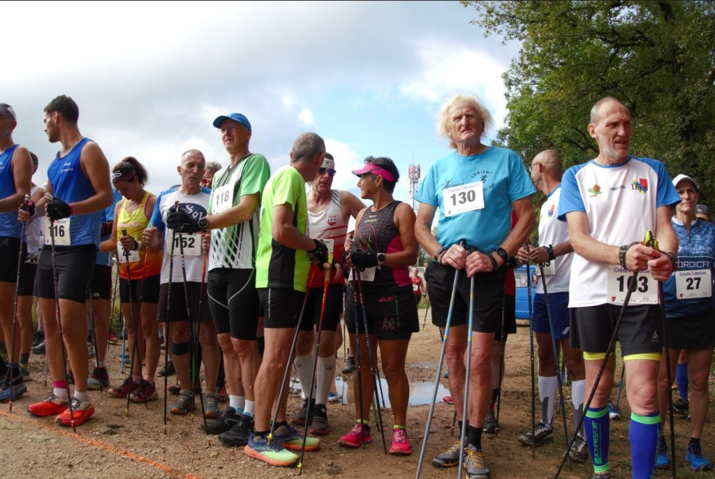 Dimanche 10 h, avec la présence des officiels dont Céline Vialet, conseillère départementale c’est le départ donné par Steve Moulis. Bon, une vaste pagaille sur ce chemin caillouteux, 104 marcheurs dont les bâtons s’entremêlent. Il faut partir très vite sans être à la faute, après c’est chacun pour soi, le risque de se blesser, de malmener un concurrent, partir propre dans les derniers est une option, mais le chrono tourne pour tout le monde…carton rouge donc pour ce départ…même si je suis conscient que les organisateurs font au mieux en fonction du lieu et que chacun est responsable de sa personne…