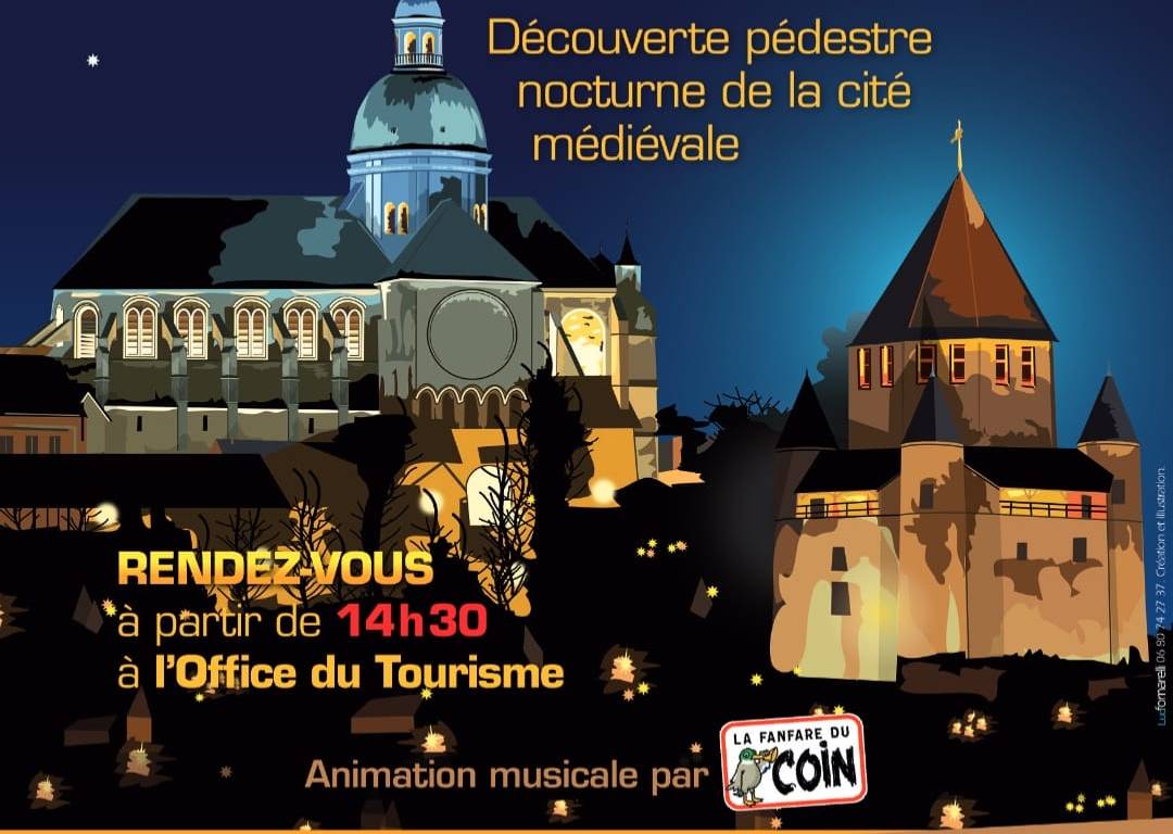 Le point de rendez-ous est fixé à 14h30 à l’Office de Tourisme. Le retour des randonnées à la nuit tombée permettra de découvrir les rues et les monuments de la ville illuminée tel que la Tour César et la Place du Châtel.