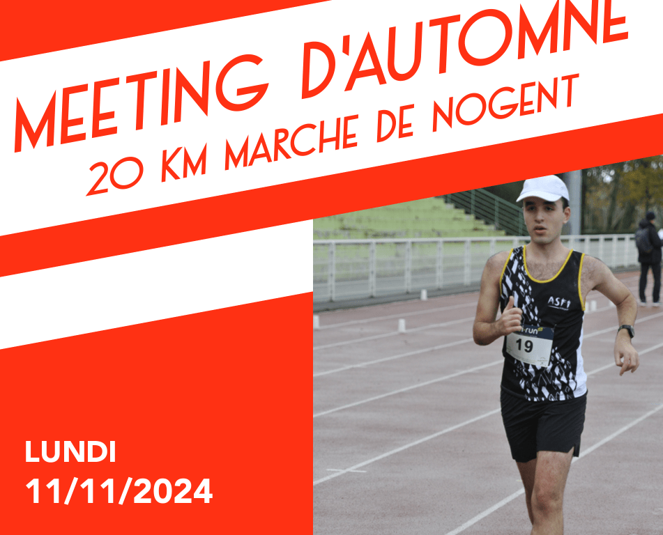 Rendez-vous important ce week-end pour les marcheurs athlétiques avec le Meeting d’Automne 20 km marche, le lundi 11 novembre.