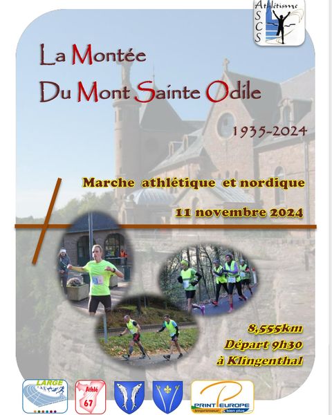 L’épreuve de la Montée du Mont Sainte-Odile dont le départ se fait depuis l’Hôtel des Vosges à Klingenthal se dispute depuis 2035 en marche athlétique chaque 11 novembre. Depuis, l’épreuve longue de 8550 mètres avec 470 mètres de dénivelé, s’est ouverte à la marche nordique.