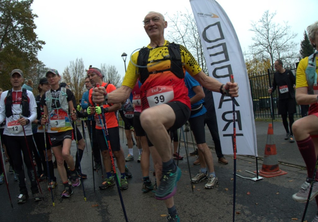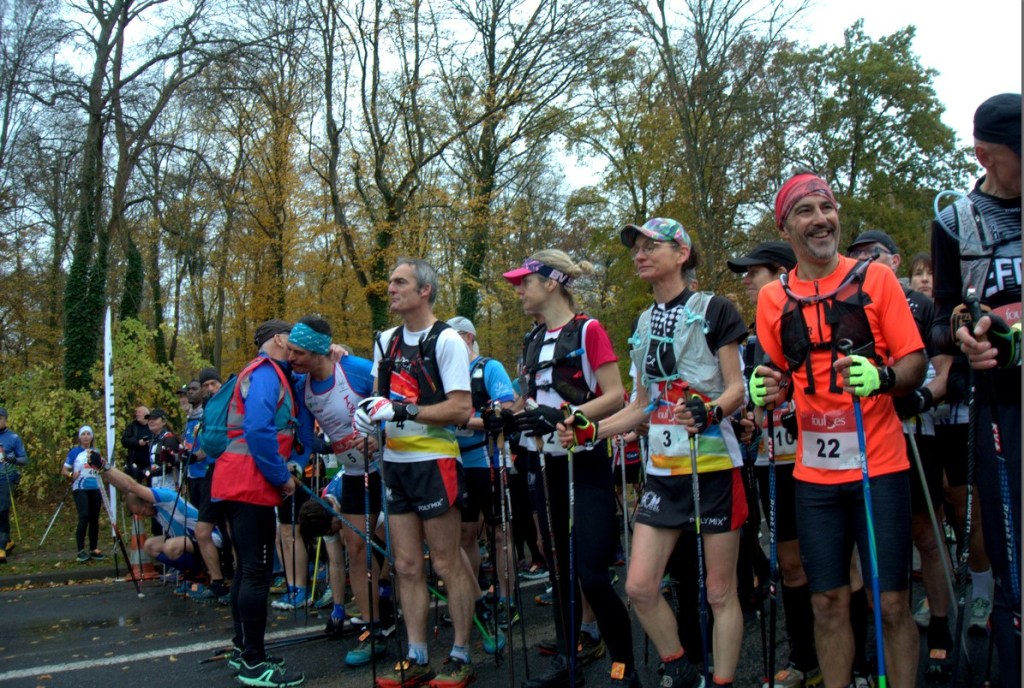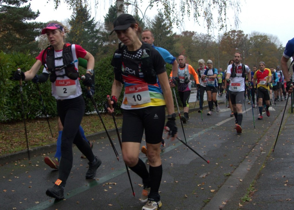 9 h 30, c’est un départ canon pour les 50 » élites » et les autres pour 130 m de bitume avant le premier goulet, les places sont chères, le geste plus difficile à contrôler sur ce sol dur, les pointes glissent, il faut préserver ses bâtons, ne blesser personne, une traversée de route et enfin la forêt….