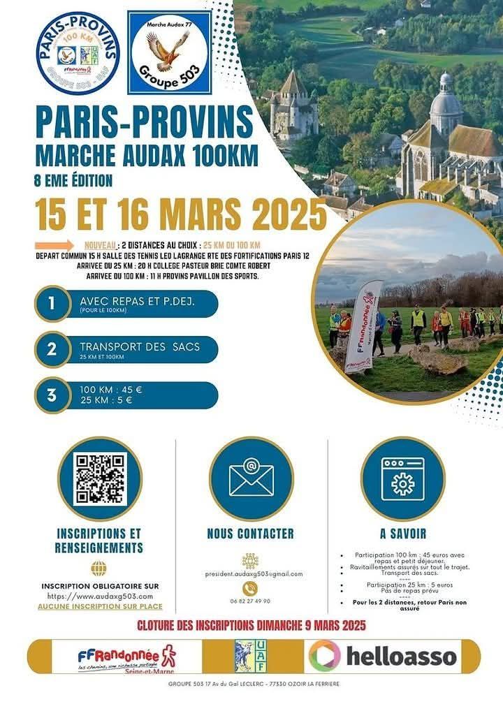 Le Paris-Provins revient en 2025 du 15 au 16 mars pour une 8ème édition. Après une première expérience en 2024, hâte de retrouver cette marche audax organisée par le Groupe 503.