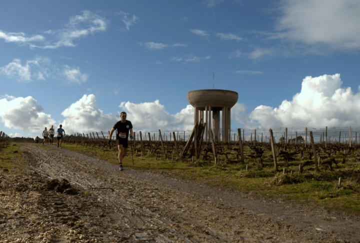 Tout commence sur la ligne de départ. C’est mon 97 ème sur une MNT, une expérience qui me permet d’avoir quelques doutes sur l’égalité des chances. Si la ligne est large c’est tout de même une hérésie de faire partir femmes et hommes en même temps, le premier virage est proche…et ça bouchonne, les femmes…pour l’instant marchent moins vite, mieux à mon avis, et le sas élite mis en place a montré ses limites…un jeune prometteur comme Aurélien Champrosé en fera les frais…on s’agglutine pour sortir du bois, enfin de la pinède, faut être vigilant, trous et racines nous guettent, les secondes sont précieuse. Alan et David en seront les premier sortis pour la partie vignoble, le fameux Château Olivier, terrain caillouteux et boueux, belles flaques, le château d’eau domine, amer remarquable dans cette mer de ceps tout juste taillés !
