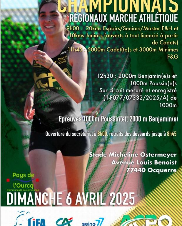 Le Stade Micheline Ostermeyer de Ocquerre (77) accueille ce Dimanche 6 avril 2025, les championnats régionaux de marche athlétique.