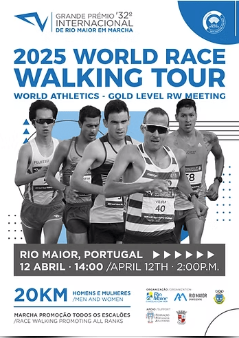 Une belle épreuve à suivre ce 12 avril 2025 : Le Grand Prix International de Marche de Rio Maior (Portugal). Cette compétition est le résultat d’une organisation conjointe de la Mairie de Rio Maior, de Desmor EM, SA et du Club de Natation de Rio Maior, avec le soutien de l’Association d’Athlétisme de Santarém, de la Fédération Portugaise d’Athlétisme et de World Athletics.