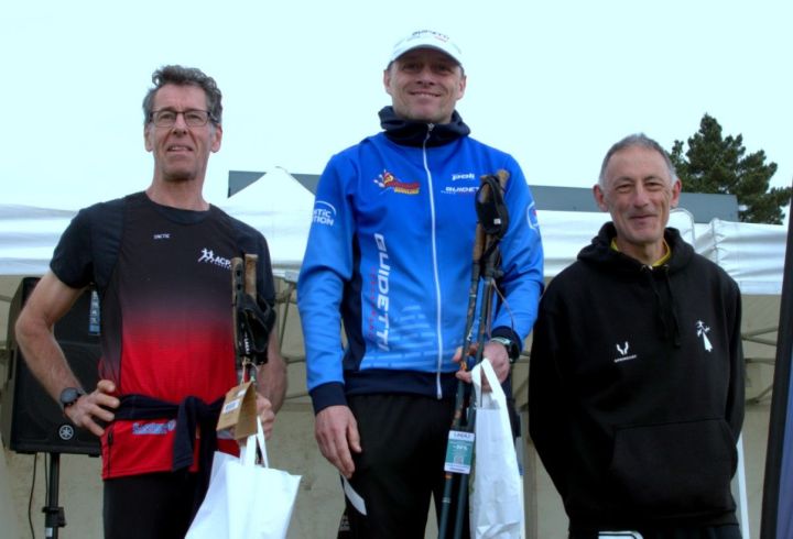 Aux ordres du starter dès 10 heure, après les consignes d’usages, seul 66 marcheuses et marcheurs s’élancent sous un ciel nuageux pour une lutte intense. Deux compétiteurs vont faire le spectacle, le Normand Thierry Leroux de la Team Guidetti Nordic Performance et le Nantais David Presselin, licencié à l’Athlétic Club du Pays d’Ancenis, des techniques différentes, passages de relais, un bel esprit sportif, et finalement une victoire à l’arraché de Thierry en 1 h 16 min 19 s soit 9,51 km/h de moyenne. David est dans ses pas à 10 secondes…bravo à tous les deux ! Le Breton Yvon Morin de l’EAC prend la troisième place.