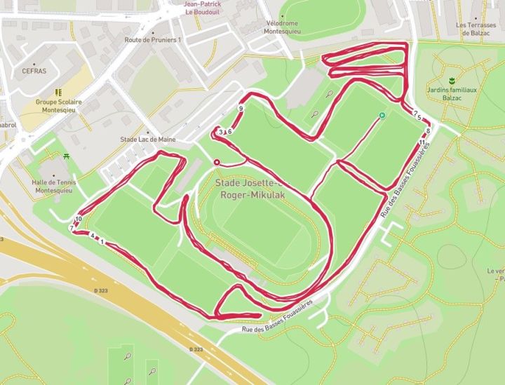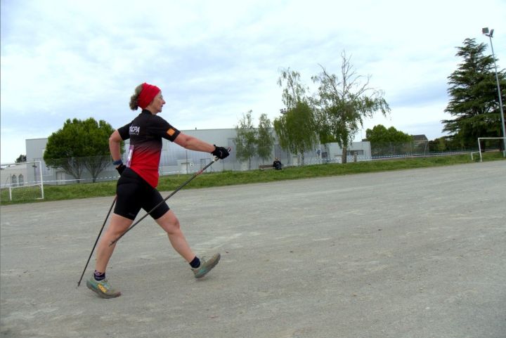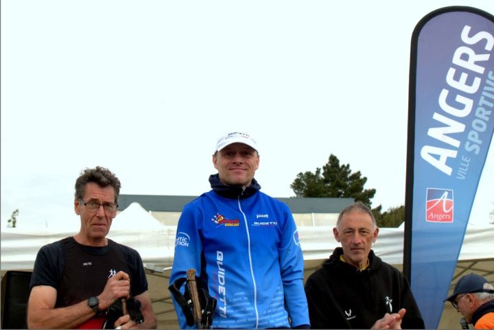 Avec la mise à disposition du Stade Josette et Roger Mikulak par la mairie d’Angers avec pour contrainte la date de l’évènement pendant les vacances scolaires, c’est un lieu parfaitement adapté à la manifestation avec tous les équipements. Les équipes de l’E2A ont tiré le meilleur parti du site en traçant une boucle de 3 000 mètres à parcourir quatre fois, la zone de départ est suffisamment large pour les 69 inscrits de la compétition, un petit raidillon en sortie avant de faire le tour du stade, sol en grave un peu dur puis zone arborée et herbeuse parfaitement tondue, où le bâton plante bien, une bonne propulsion, des relances, nouvelle butte, quelque mètres de bitume, un vrai bonheur nordique, au total 12 100 m, enviroģn 30 mètres de dénivelé, et une belle visibilité sur l’ensemble du parcours, nous aurons juste à déplorer une chute nécessitant l’intervention des pompiers.