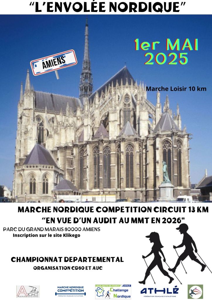 L’Envolée Nordique qui se dispute le 1er mai 2025 à Amiens (Hauts de France), propose en parallèle de l’épreuve chronométrée, une marche nordique loisir.