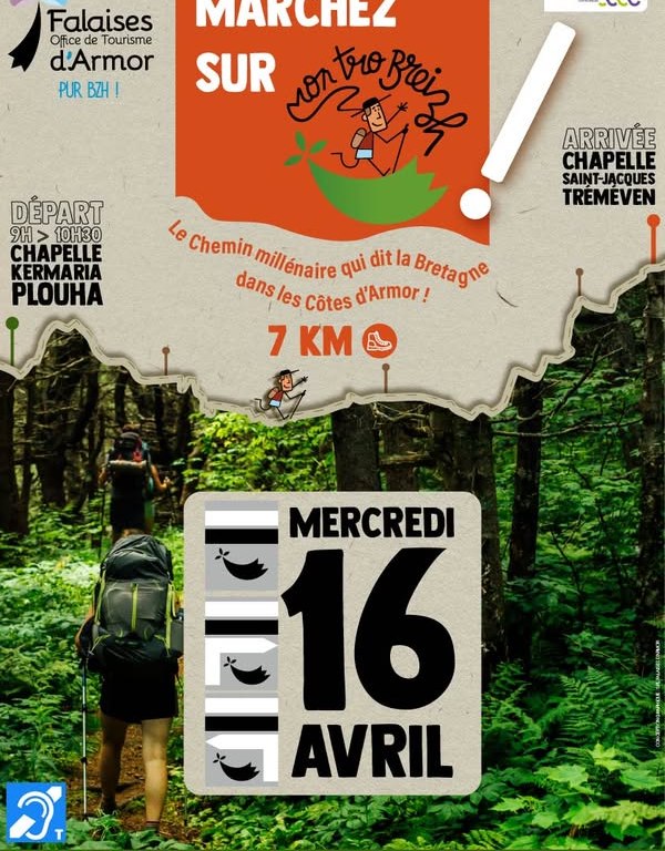 Mercredi 16 avril 2025, l’équipe de l’association Mon Tro Breizh, dont Arnaud Lampire, directeur de l’association, et l’office de tourisme Falaises d’Armor, invitaient le public à parcourir une partie du nouvel itinéraire de 7 km, de la chapelle de Kermaria, à Plouha (Côtes-d’Armor), jusqu’à la chapelle Saint-Jacques, à Tréméven.