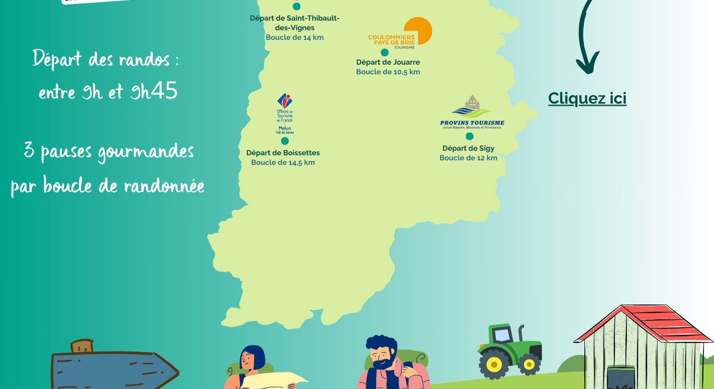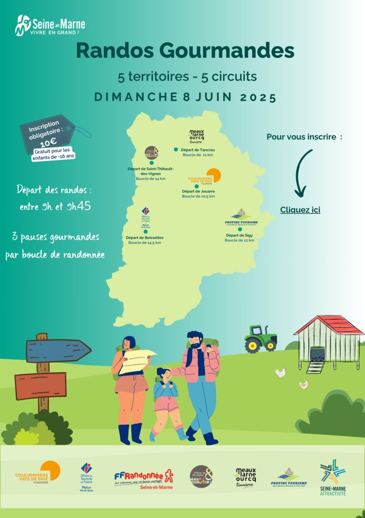 Le dimanche 8 juin plusieurs randos gourmandes sont organisées dans le département du 77 : 5 parcours de 10 à 14 km, 5 territoires.