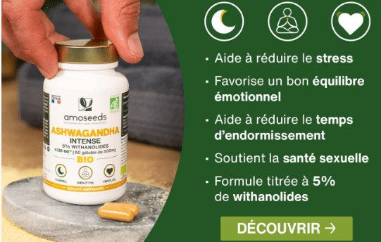 N’hésitez pas à découvrir l’Ashwagandha Bio en version poudre ou gélules, et à profiter du code promo : CULTUREMARCHE, pour bénéficier de 10% de remise sur toute commande de la gamme AMOSEEDS.