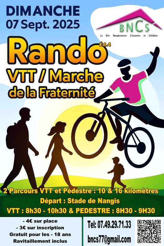 L’association BNCS de Nangis (77) organise la 4ème édition de sa Rando Marche de la Fraternité. Deux parcours au programme 10 et 16 kilomètres.