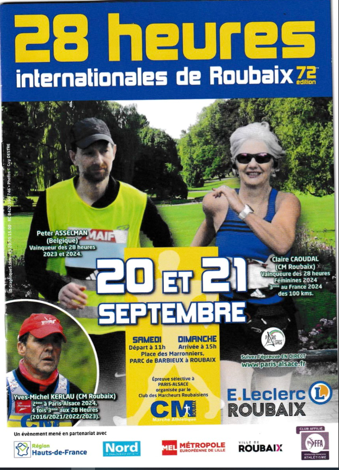 Les 28 Heures Internationales de Roubaix, organisées par le Club des Marcheurs Roubaisiens, se sont déroulées ce week-end du 20 et 21 septembre 2025 au cœur du Parc Barbieux.