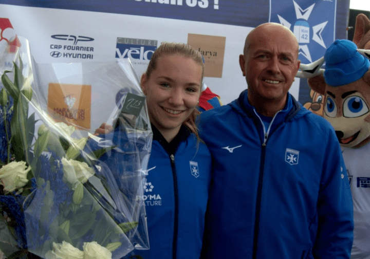Lilou Passemard, autre Championne de France Espoir, très encouragée par son public monte sur le podium avec un temps amélioré de plus de 8 min comparé à 2024 et c’est sa première année de MN ! De belles ambitions, le soutien de son club, l’AJ Auxerre section Marathon, des entraîneurs au top, un beau sourire et l’envie de progresser !