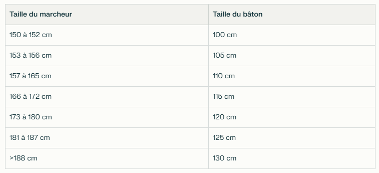 Pour ce qui est de la taille du bâton, la norme actuelle s’appuie sur la formule : Taille X 0.68. Si vous faites 1m80 : 1.8 X 0.68 = 1.22… vous êtes plus près du 120 cm. Certains pourraient se tourner vers des 125 cm. Lorqu’on début il est préférable de prendre en dessous, c’est à dire 120 cm. Il est conseillé d’essayer les bâtons. Un 120 cm dans une marque ne fera pas la même taille qu’un 120 cm d’une autre marque. Certaines marques mesurent à partir du haut du bâton, d’autre de la prise en main. La morphologie du marcheur peut aussi être différente pour une même taille. Dans d’autres pays d’autres règles existent comme la hauteur à la hauteur du nombril….. Essayé le bâton et regardé où se plante le bâton, la pointe doit être au plus près du centre de gravité…. si trop à l’arrière, le bâton peut être trop grand, trop près du pied avant, il peut être trop court.