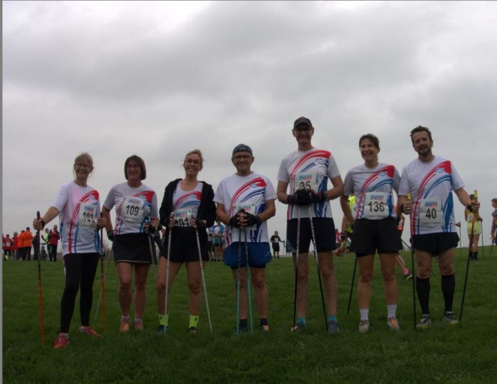 Proposé par l’Athlétic Club Outreau, ACO, pour la troisième consécutive, avec un label national, comptant pour le Challenge Nordique des Hauts-de-France, le classement MNT et sélectif pour les France le 8 Mars prochain ! Le chef d’orchestre ici c’est Bruno Champion, un passionné comme ceux qui font la réussite de nos compétitions avec force conviction secondé par Jean-Pierre Podevin, le directeur de compétition, et une belle équipe de bénévoles ! c’est certainement un des circuits les plus adaptés à la Marche Nordique, un parcours bien tracé, essentiellement de l’herbe tondue ras, c’est vert, très vert, au loin la mer, bien grise ce jour, la poussée est optimum, quatre boucles, 11 950 mètres officiel, 12 060 à ma montre, 200 mètres de dénivelé positif, c’est très physique, en permanence dans l’effort, la relance, sous l’œil attentif d’une belle équipe de juges dirigés par Edouard Routier, efficacité avant tout, des habitués comme Bruno Cainne, Michel Pardon, Claude Mariotte, Rose-Noelle Holterbach, Yves Mahé, certains en validation comme Nicolas Galdéano, merci à eux, des bénévoles qui savent donner de leur temps pour valider nos compétitions !