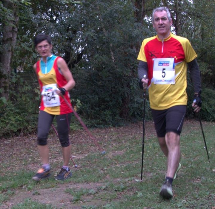 Autre mise en valeur avec une compétitrice comme nous aimerions en rencontrer plus souvent, Stela Rameau de l’AC Outreau est déficiente visuelle, pas de quoi freiner sa passion de la marche nordique, le handisport est une réalité, l’adaptation s’est faite avec l’aide de passionnés comme Claude Mariotte et de son club, soutenu par Bruno Champion, la CNM a su répondre à la demande, Stela marche avec une guide à ses côtés, lui indiquant les difficultés, je l’avais déjà croisé à Aire-sur-la- Lys en juin dernier, 52 ème féminine, 12 ème en M3F, Stéla se prépare pour les prochain Championnats de France !