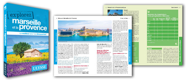 Agréable à consulter et ultra-pratique grâce à son format de poche et à sa structure compréhensible en un clin d’œil, le guide de voyage Explorez Marseille et la Provence est l’outil parfait pour préparer son voyage sous l’éclatant soleil méditerranéen. On y retrouve :